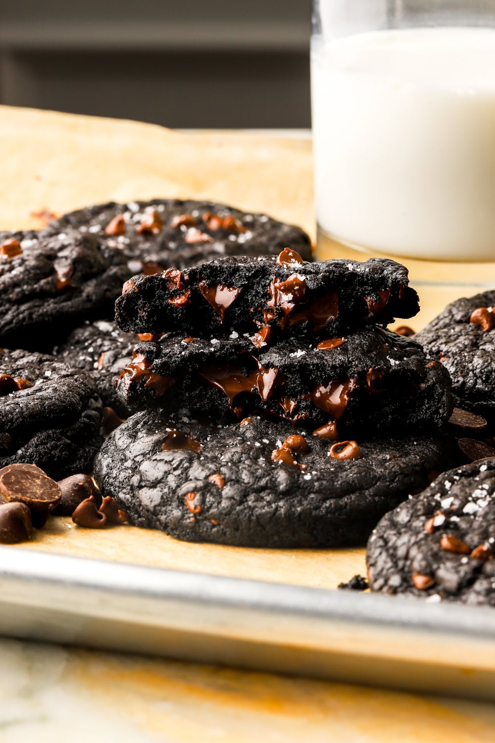 The most indulgent black cocoa cookies stuffed with dark chocolate chips and mini chocolate chips. They’re so quick & easy and to make