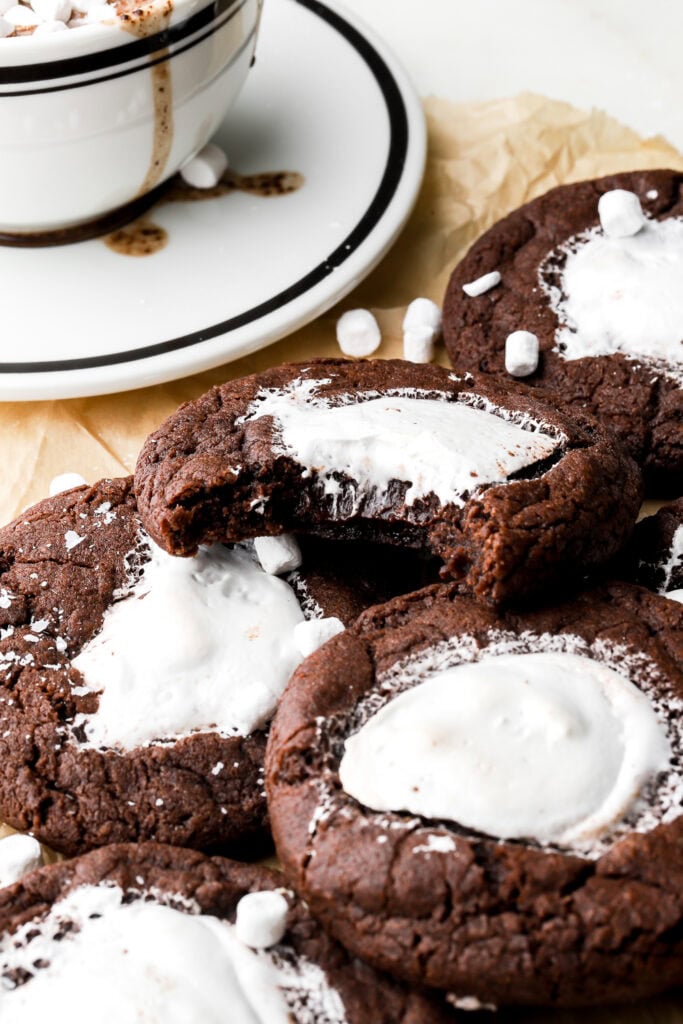 Ya’lllll. Tell me it’s Christmas without telling me it’s Christmas. These chocolate cookies are filled with a hot chocolate fudge center that’s made with actual hot chocolate (Swiss Miss) powder. It stays gooey and fudgy in the center (almost like a lava cake?) after baking and of course, it’s topped with marshmallow fluff.
